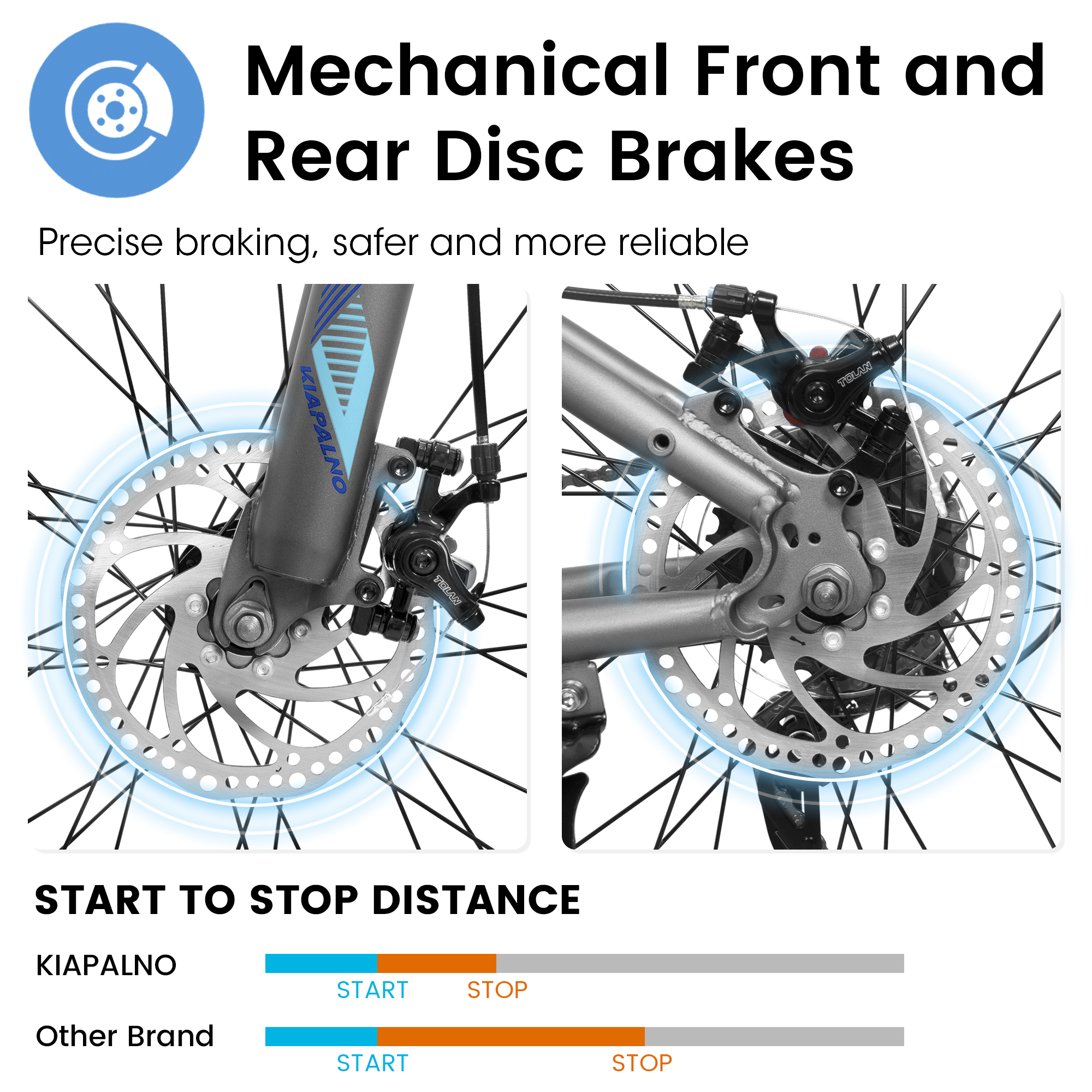 Durable 26-inch mountain bike featuring a high carbon steel frame, 21-speed gear system, and front/rear mechanical disc brakes for reliable performance.