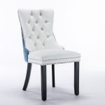 Set of 2 high-end tufted dining chairs with solid wood legs, upholstered in PU and velvet, featuring nailhead trim in white and light blue.