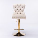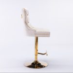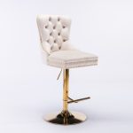 The AA Furniture set includes two premium swivel barstools featuring thick golden frames and soft beige velvet upholstery. Each stool offers an adjustable seat height ranging from 27 to 35 inches, accommodating various counter and bar heights comfortably. Designed with tufted backs, these modern upholstered stools provide both style and ergonomic support. Their durable construction and luxurious fabric make them a perfect choice for home kitchens, pubs, and kitchen islands, combining functionality with elegant aesthetics.