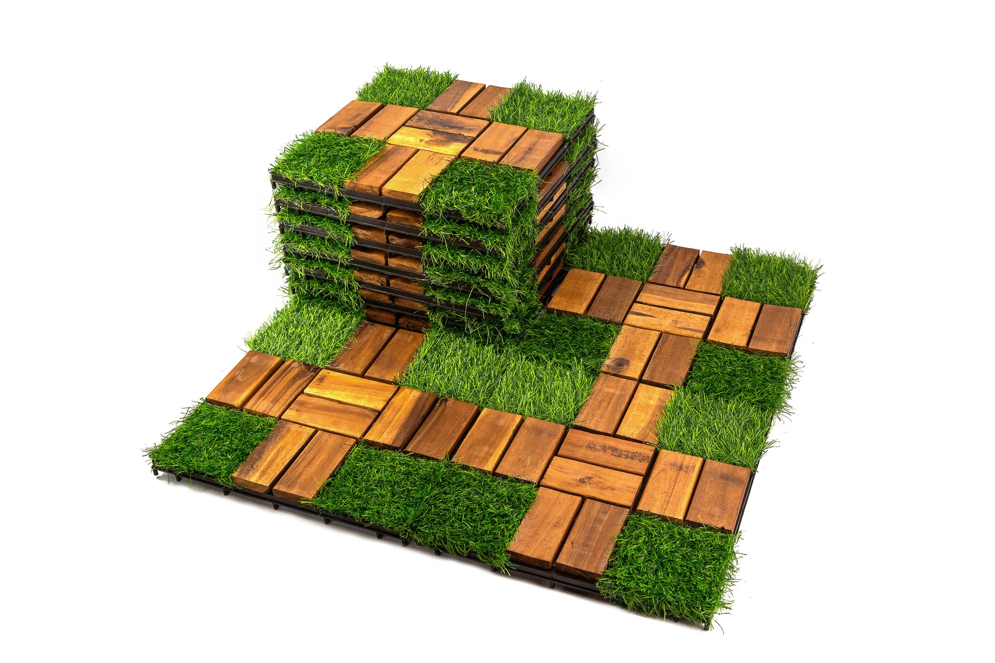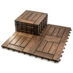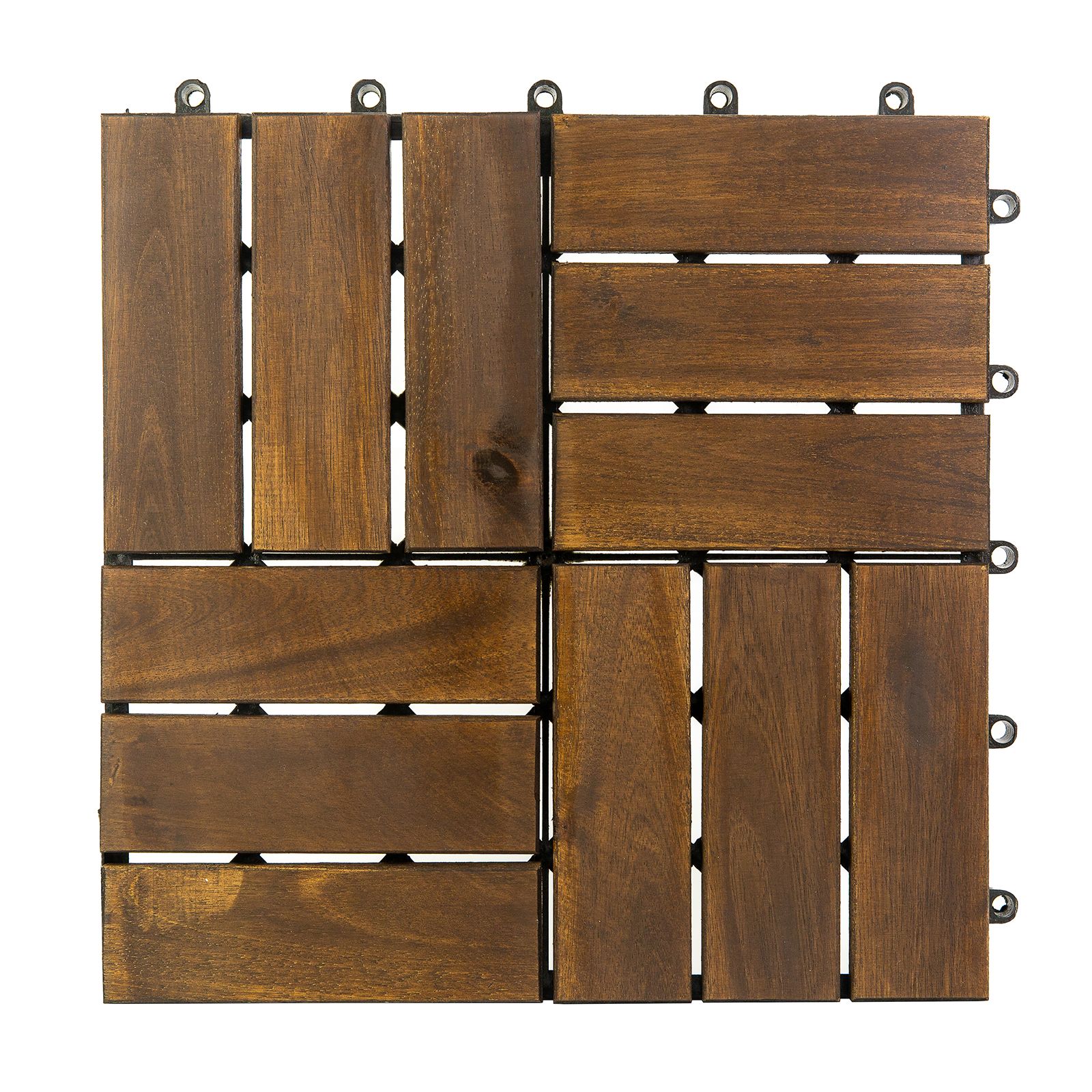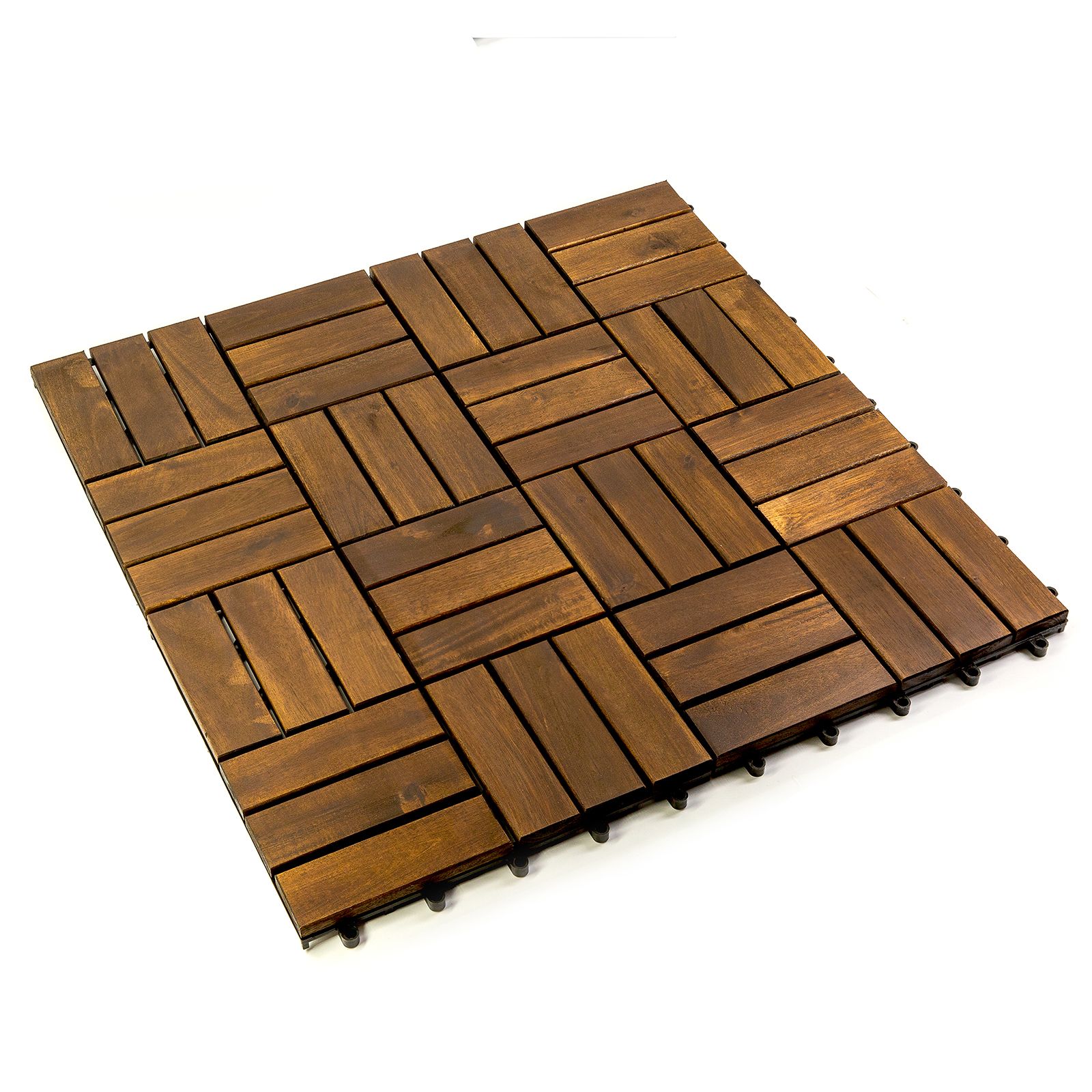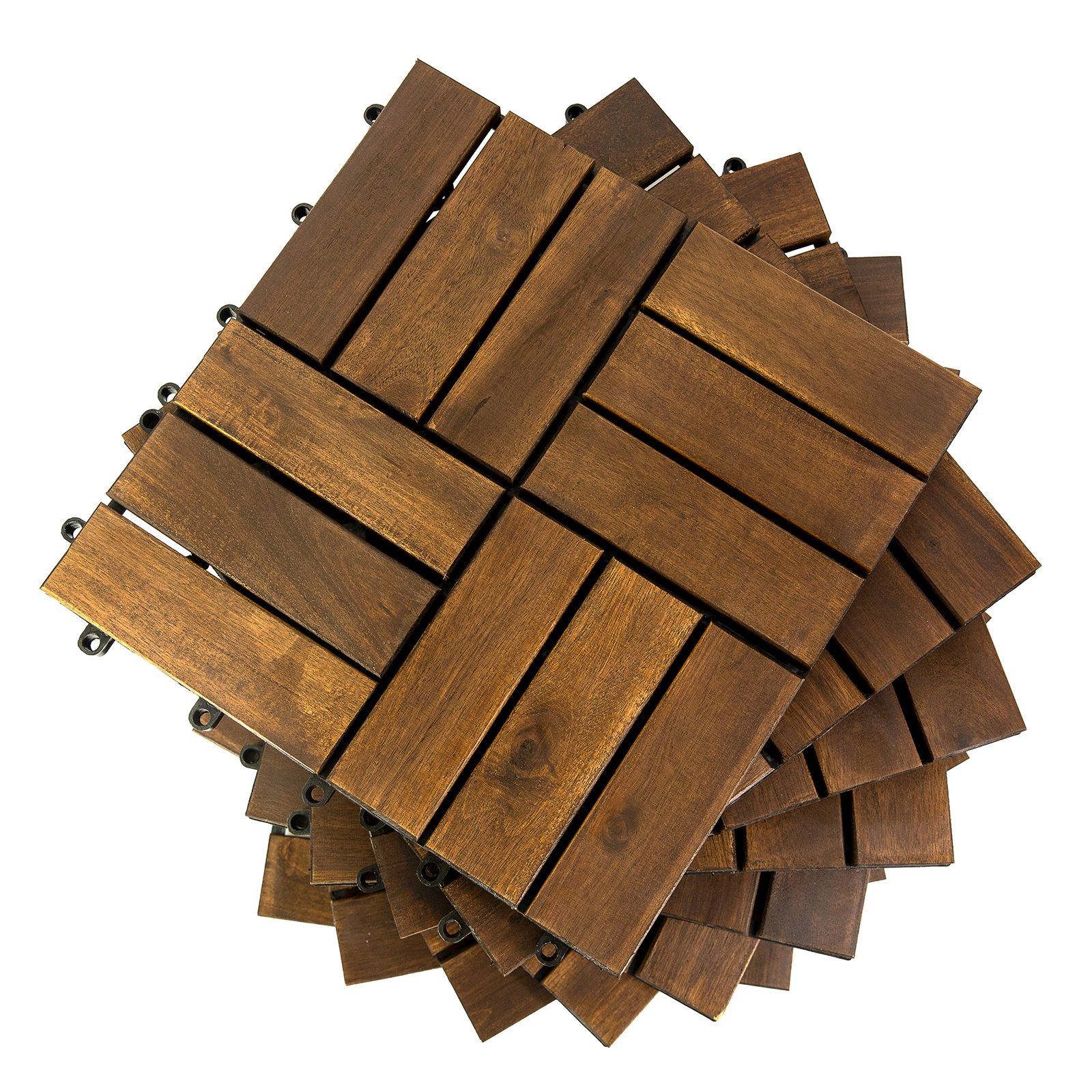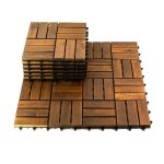 Durable 10-pack Acacia wood assembled flooring tiles, each 12″ x 12″, ideal for stylish and sturdy floor installations.