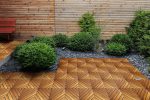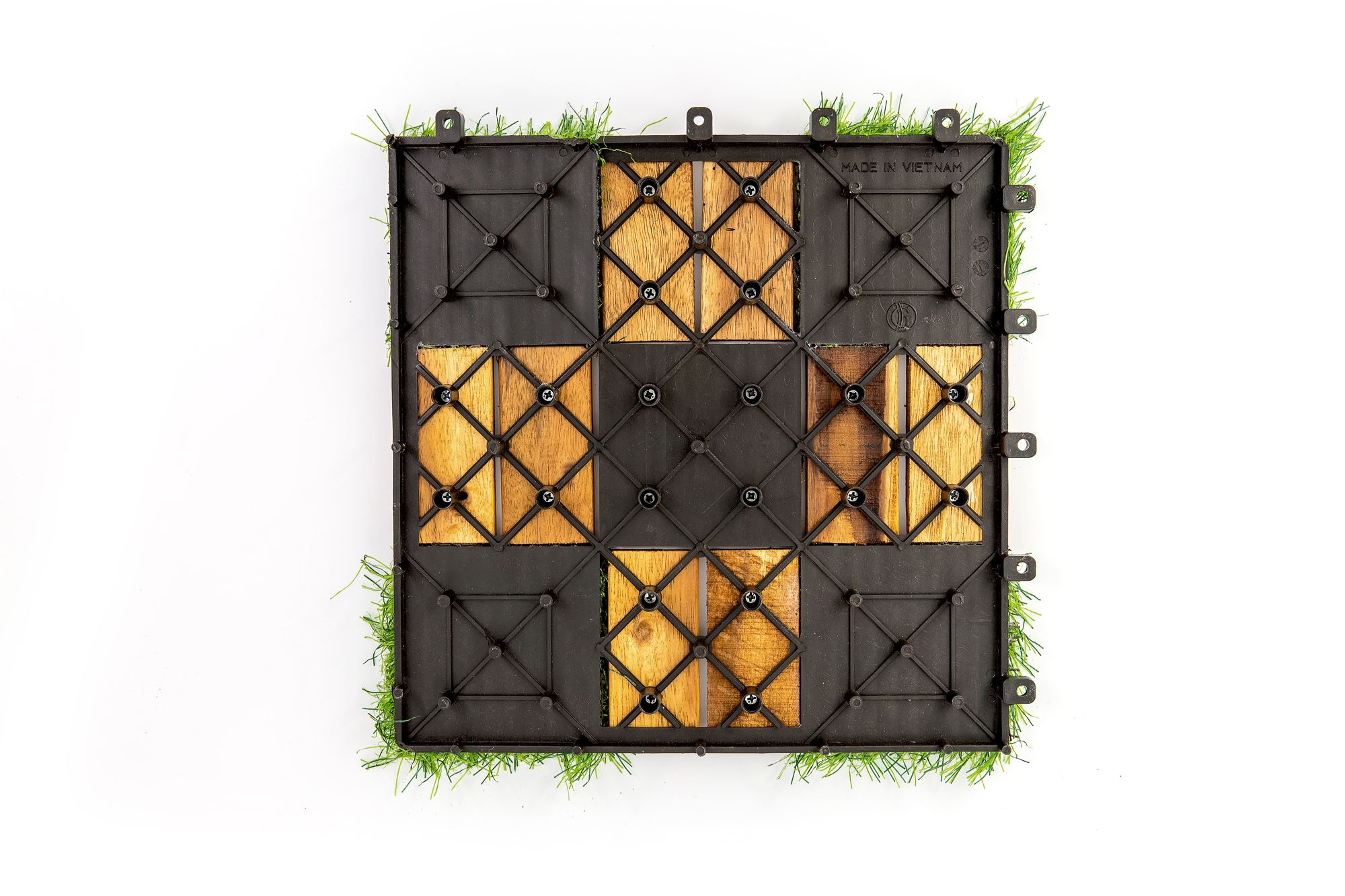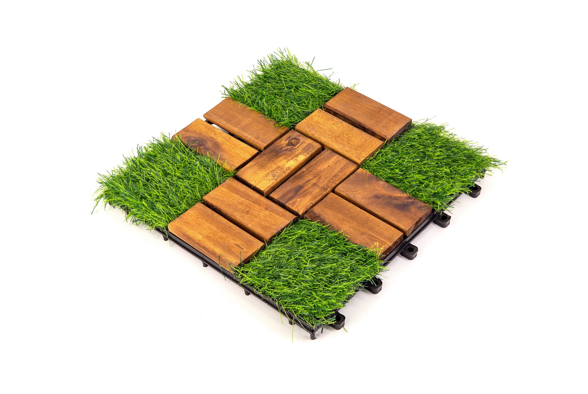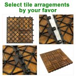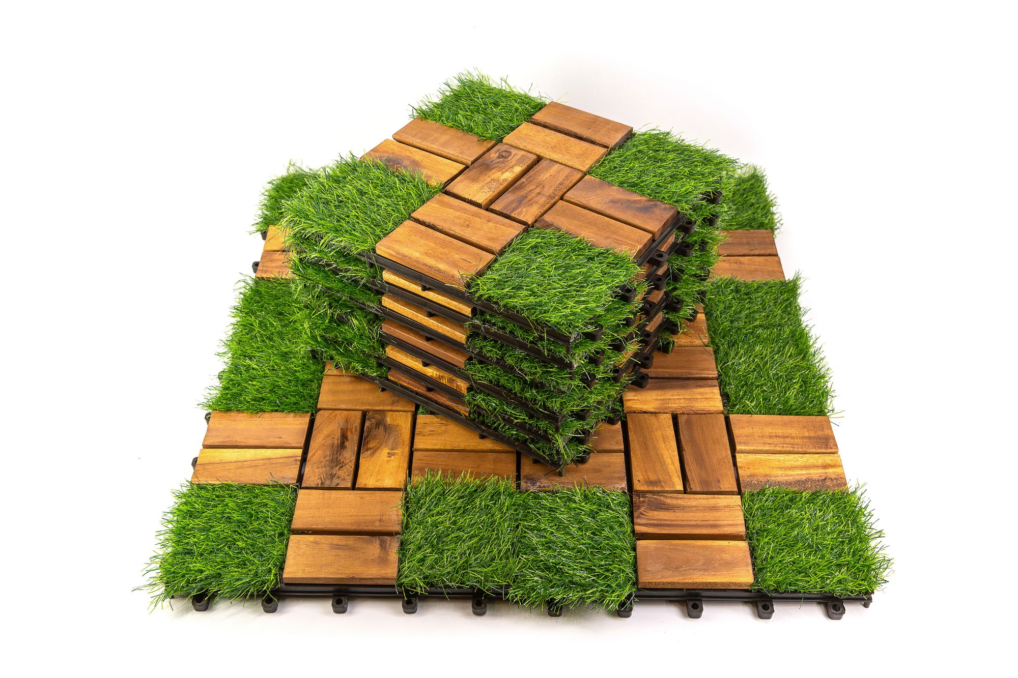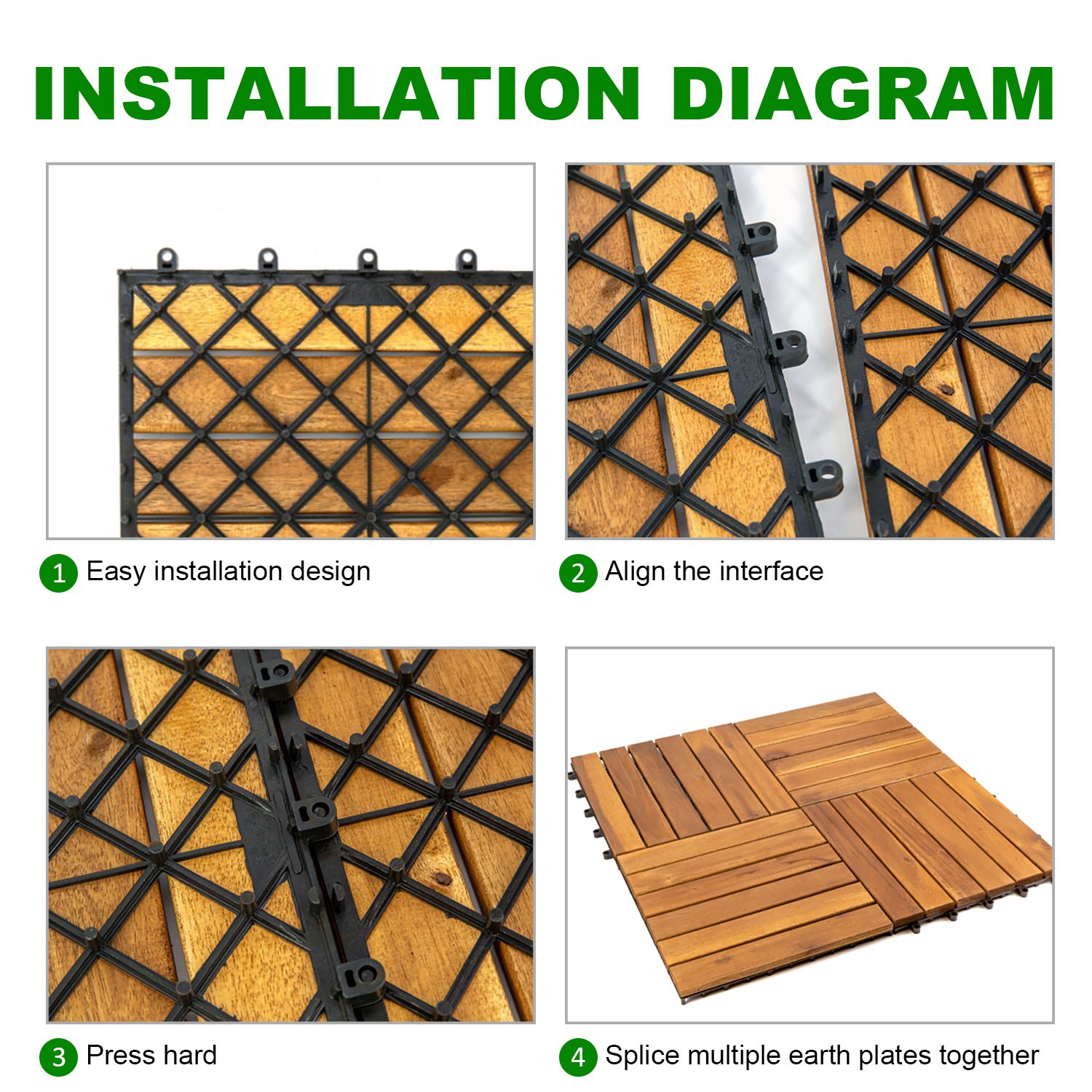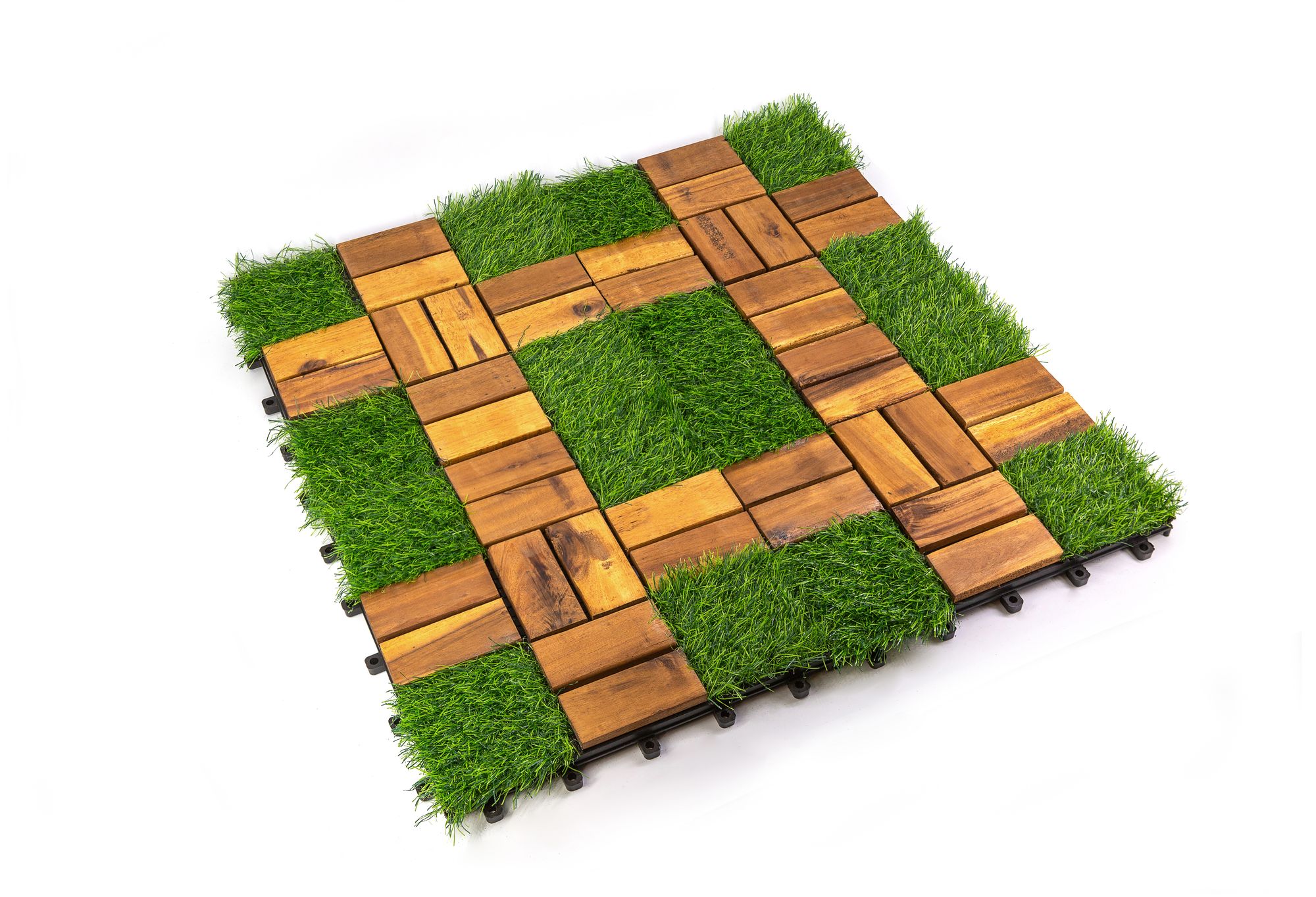 Durable 10-pack Acacia wood assembled flooring tiles, each 12″ x 12″, ideal for stylish and sturdy floor installations.