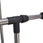 This adjustable clothes rack is designed with two parallel clothes rails providing ample space for hanging garments. Constructed from robust materials, it ensures long-lasting durability and strength. The rack features four smooth-rolling wheels for effortless movement, enhancing flexibility in placement. Its adjustable height and width accommodate various clothing sizes and storage requirements, making it ideal for both home and commercial use. The stable frame and convenient mobility make it an excellent solution for organized garment storage and display.