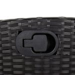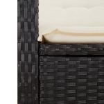 Durable adjustable garden bench made from black poly rattan, featuring a comfortable cushion for outdoor relaxation.