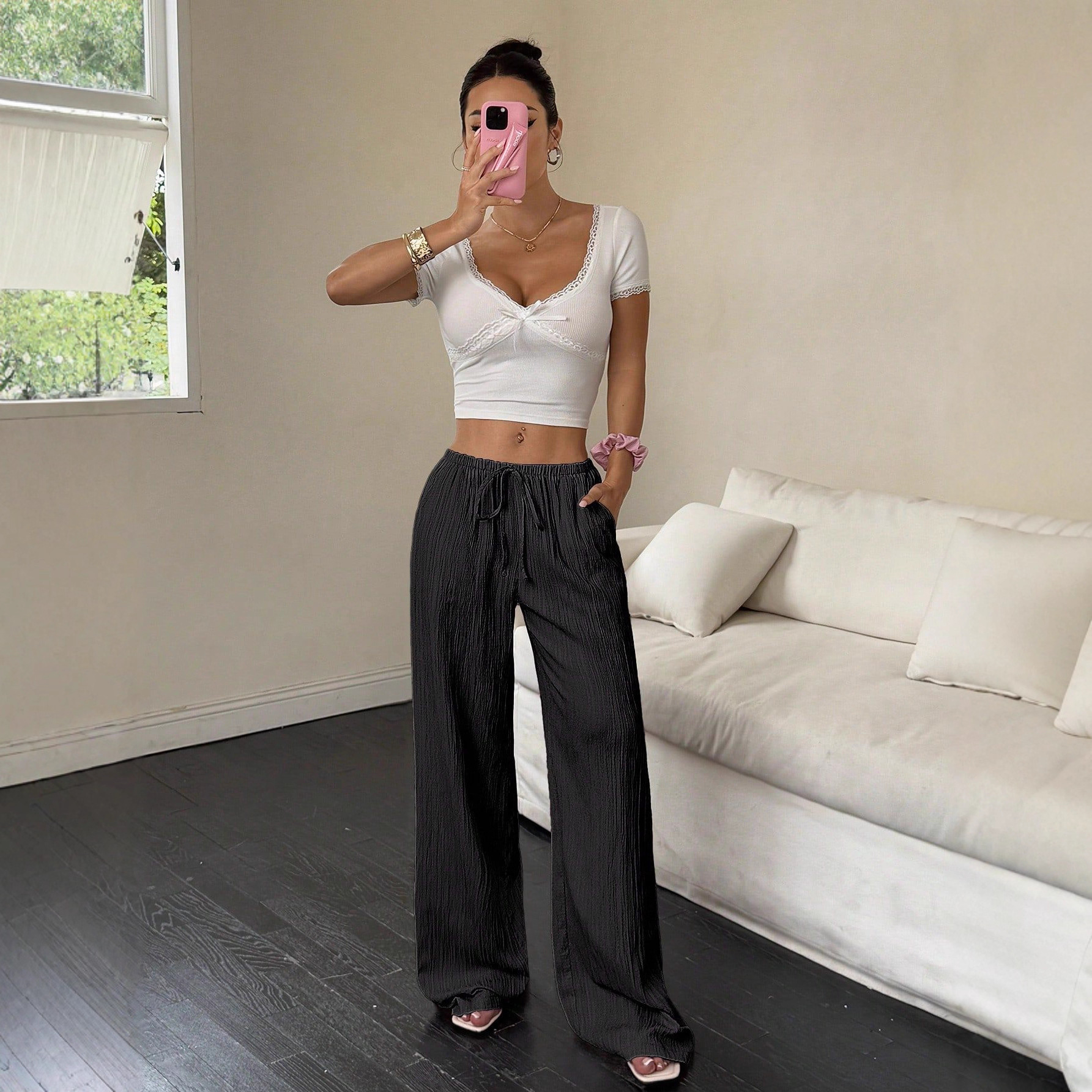 Stylish casual women’s trousers featuring a lace-up waist for a flattering fit and versatile wear.