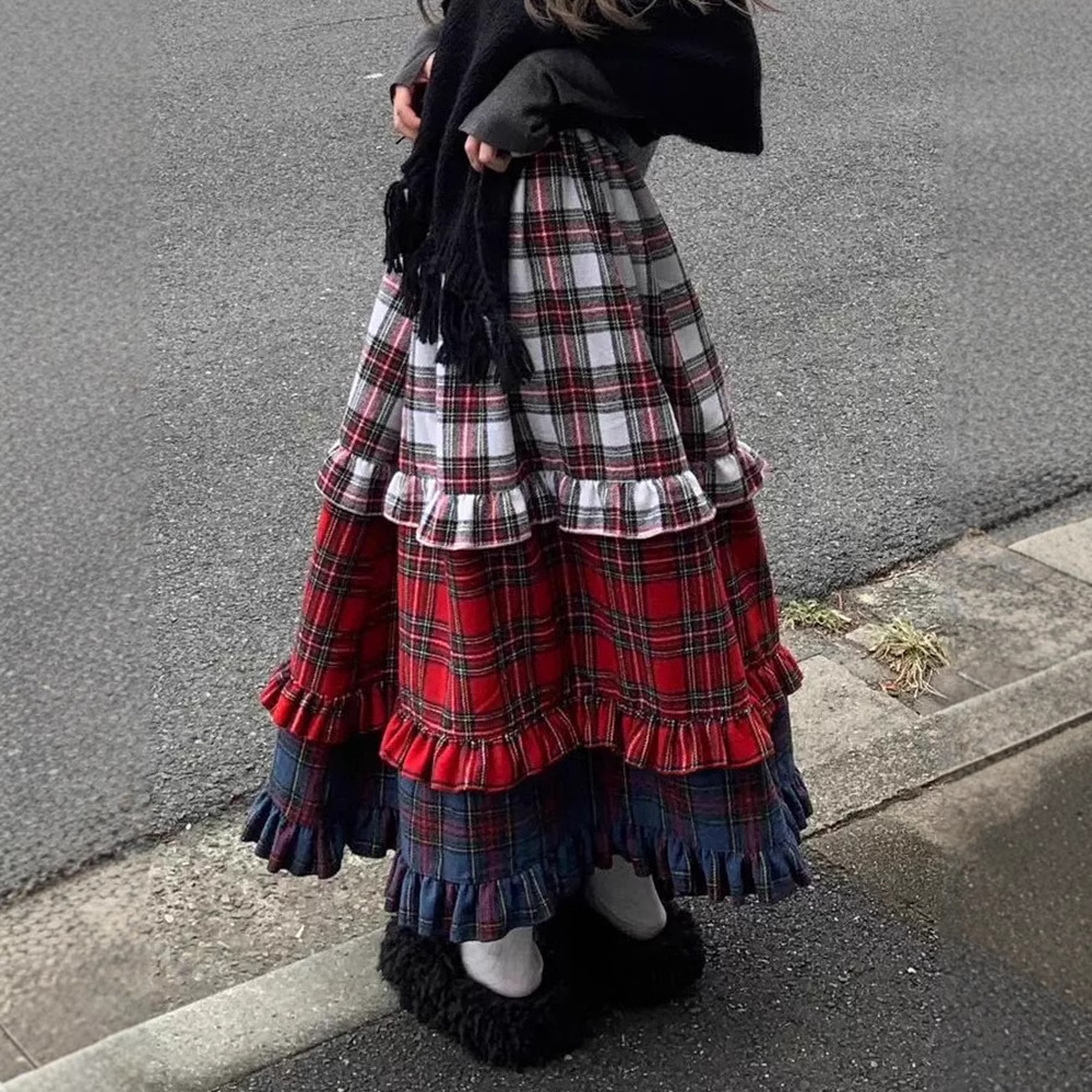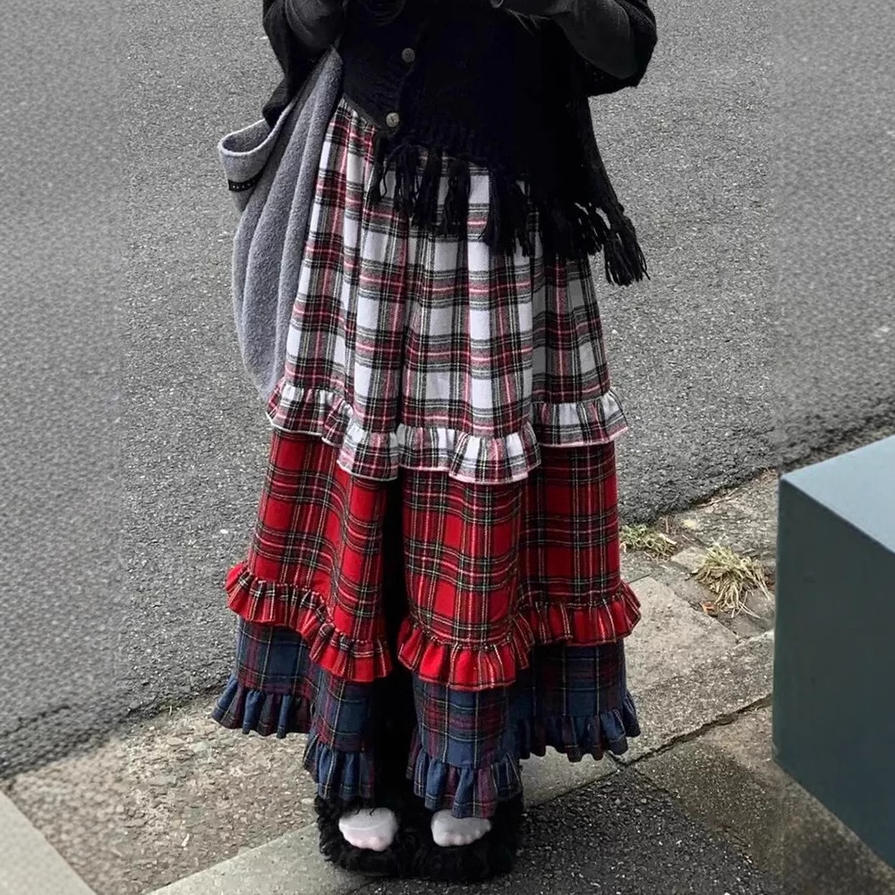 Stylish American-style retro lace skirt with color gradient, perfect for women’s casual all-match wear.