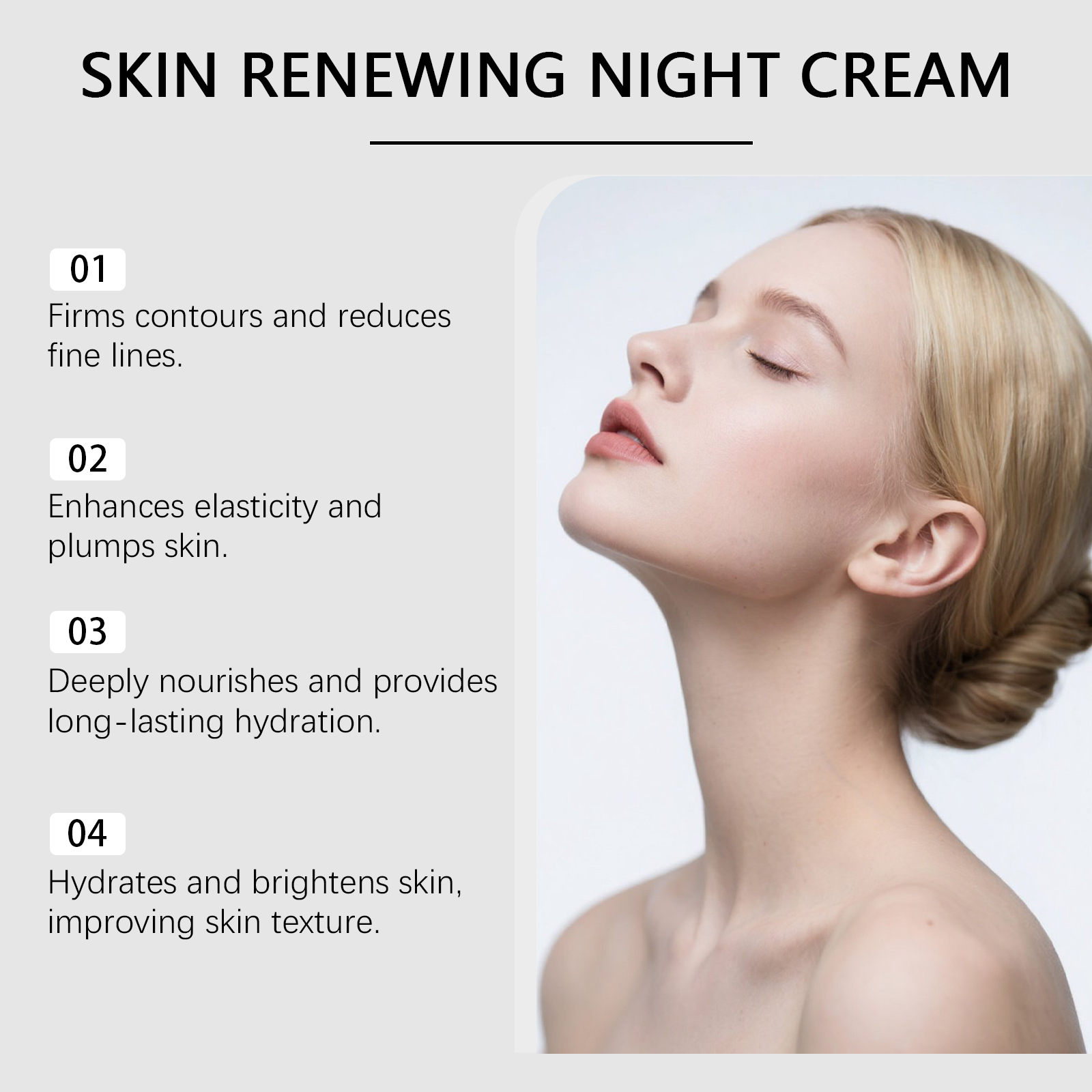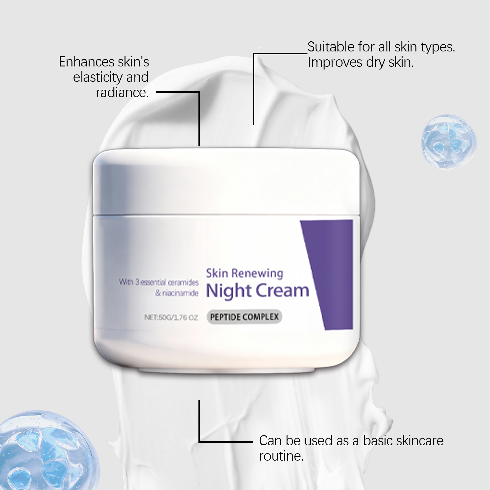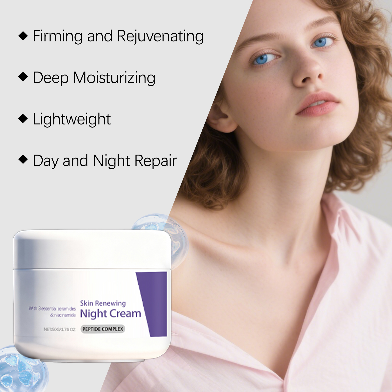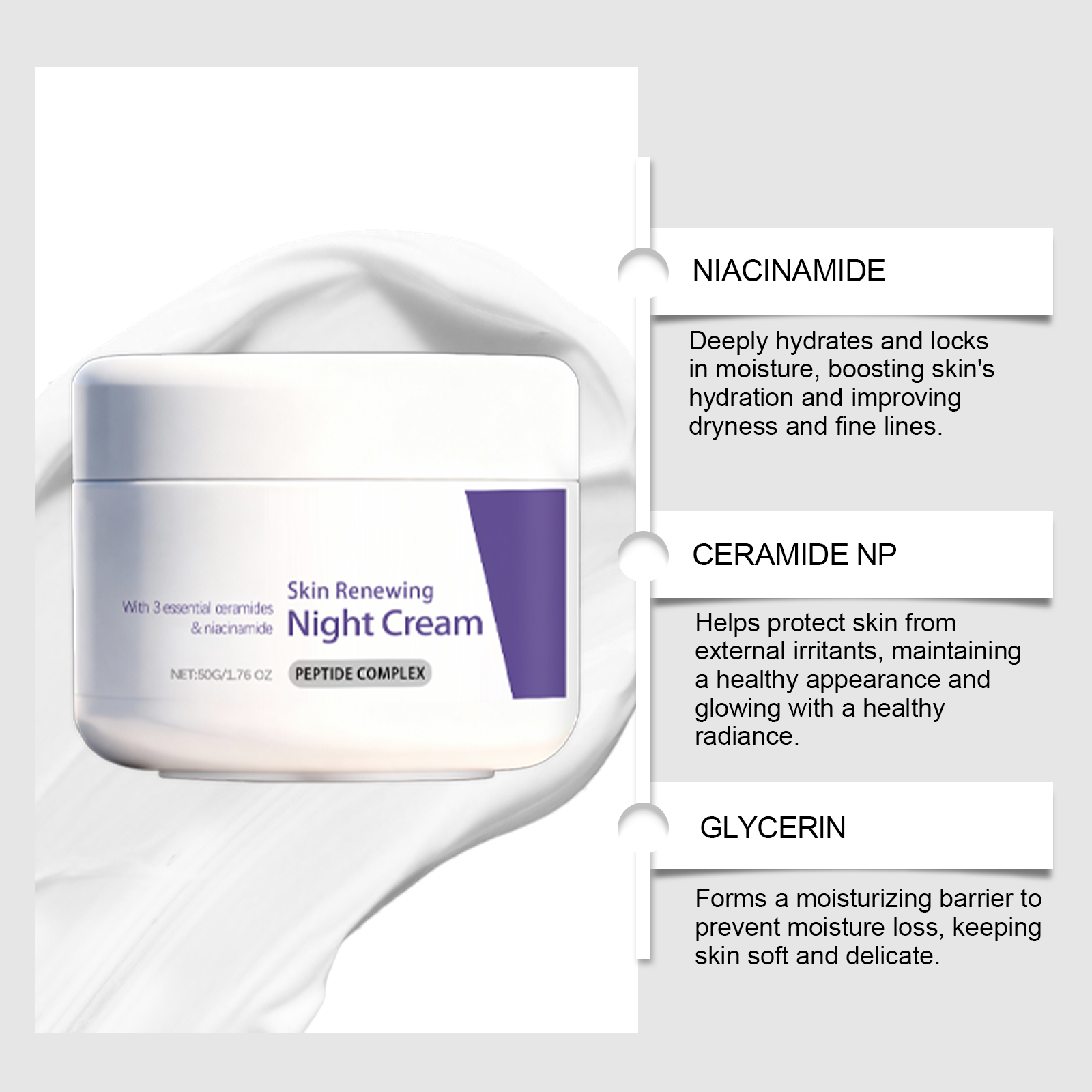 Our skin care night cream is carefully formulated with glycerin, mineral oil and glycerin stearate. Specifically designed to reduce fine lines and wrinkles, enhance your skin’s firmness, create smooth and plump youthful skin, deeply nourish and lock in moisture, provide long-lasting hydration, and improve dry and rough skin texture. The usage method is extremely convenient: 1. Gently wash your face with a mild facial cleanser and then pat dry. Take a pea-sized amount of face cream and apply it evenly to the facial skin. 3. Use circular and upward movements to help this product be deeply absorbed by the skin. For the best results, incorporate it as part of your daily skincare routine and use it in the morning and evening. And it can help whiten the skin, fade melanin, lift and firm the facial skin, help shrink pores, reduce swelling, and comprehensively enhance the elasticity and fineness of your skin.
