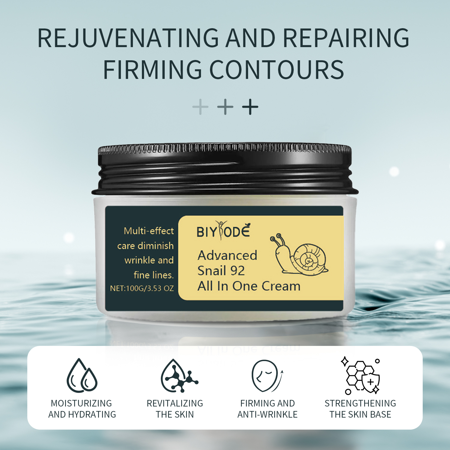 Experience firming, lifting, and wrinkle removal with Advanced Snail 92 All-In-One Moisturizing Face Cream.
