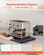 This 13 by 16 inch black appliance slider tray provides a sturdy and smooth surface designed to facilitate the effortless movement of coffee makers and other heavy kitchen appliances. Made from durable materials, it supports a wide range of weights, minimizing friction and protecting countertops from damage. Ideal for optimizing kitchen space and improving accessibility to appliances, this sliding tray ensures convenience and stability during use.