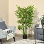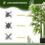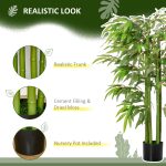 Struggling to maintain live plants? Opt for our artificial bamboo tree, a perpetually green, maintenance-free solution. No need for watering, trimming, or fertilization. Great for frequent travelers, this realistic, pre-potted faux tree enhances any room or space with its natural ambiance, blending seamlessly with any decor. Enjoy a lush green touch with zero hassle, ready to use from the moment it arrives. Features: – Artificial bamboo plant with a beautiful design – Great for home, office, or settings, adds a natural touch to any area – Features 780 leaves for a lifelike appearance – Comes in a solid nursery pot for stability – Enhanced with PE moss and cement soil for extra stability – Requires low maintenance – Assembly needed Specification: – Color: Green – Material: Cotton-like lust ring, PE, Bamboo, Cement – Type: Bamboo – Overall Height: 55″ – Pot Size: Φ 6.75″ x 5.75″ H – Item Label: 830-448 Package Includes: – 1 x Artificial Plant; Want to grow green plants but can’t keep them always green? Our artificial bamboo tree is what you need. This fake plant will stay green for many years without trimming and shaping—no watering, no fertilization, and worries when traveling. The realistic-looking leaves create a natural atmosphere for your room, and low maintenance is needed. This faux indoor tree from HOMCOM comes pre-potted, delivered ready to use, and goes well with any décor, excellent for indoor spaces. Features: – Beautiful artificial bamboo designed plant – Suitable for home, office, or outside use, spices up any space with its natural accent – Plant includes 336 leaves that bring a natural feeling to your room – A sturdy nursery pot provides a stable base – PE moss and cement soil makes it more stable – Low maintenance required – Assembly required Specification: – Color: Green – Material: PEVA, PE, Cement – Type: Bamboo – Overall Height: 60″ – Pot Size: Φ 6.75″ x 5.75″ H – Item Label: 830-447 Package Includes: – 1 x Artificial Plant; Want to grow plants but can’t always keep them green? Our artificial tree is what you need; it stays green without trimming and shaping. No watering, no fertilization, and no worries when traveling. Realistic-looking leaves create a refreshing atmosphere for your room with little maintenance needed. Great for indoor spaces, our floor plant is delivered ready to use and goes well with any décor. Arriving pre-potted, make your house feel like a home easily with HOMCOM faux bamboo. Features: – Artificial bamboo plant with three trunks – Suitable for home, office – Our plant includes 830 leaves for a refreshing feeling – It includes a sturdy nursery pot that serves as a stable base – PE moss and cement soil to weigh it down and add realism – Low maintenance required – No assembly required Specification: – Color: Green, Black – Materials: PEVA, Polypropylene, Metal, Cement – Type: Phyllostachys Sulphurea Bamboo – Overall Height: 72″ H – Pot Size: 6.75″ Dia x 5.75″ H – Item Label: 830-798V01GN Package Includes: – 1 x Artificial Plant;.