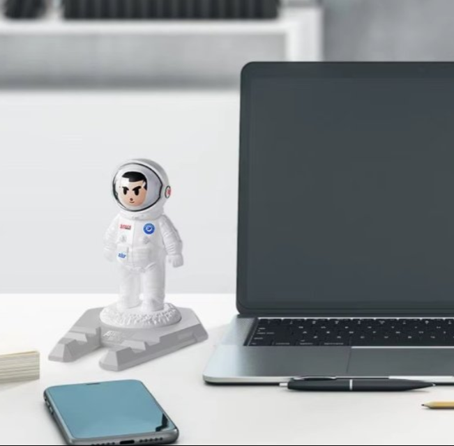 Stylish astronaut desktop stand ideal for organizing office essentials with a unique space-inspired design.