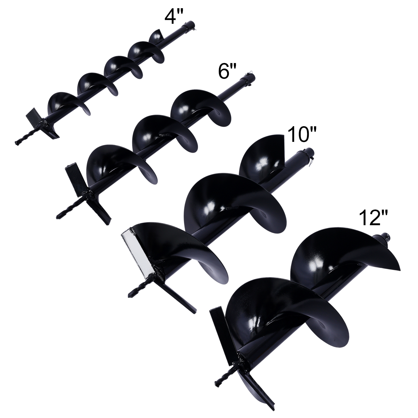 Durable auger drill bit for planting holes, bulb bedding, post holes; available in 4, 8, 10, and 12 inch sizes for 3/4″ shaft augers.