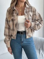 Stay warm and stylish with this autumn and winter plaid woolen jacket featuring long sleeves and functional pockets.