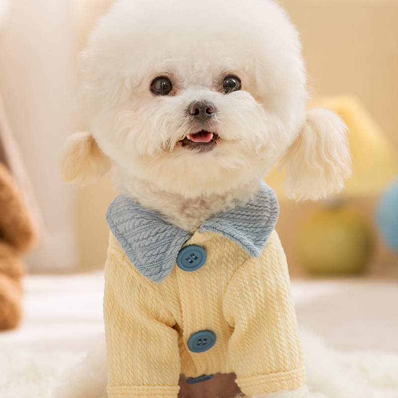 Designed for autumn and winter wear, this color-block base shirt provides warmth and style for small and medium-sized dogs, including puppies. The garment features a two-legged design suitable for pets like Teddy dogs and cats, ensuring comfort and ease of movement. Crafted with attention to detail, this shirt is an ideal addition to your pet’s wardrobe during colder seasons, offering a cute yet practical apparel option for canine companions.