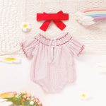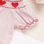 Be the first to review “Baby Girl’s Short Sleeve Pink Romper, Polka Dot Pattern With Heart Embroidery And Ruffle Detail” Cancel reply
