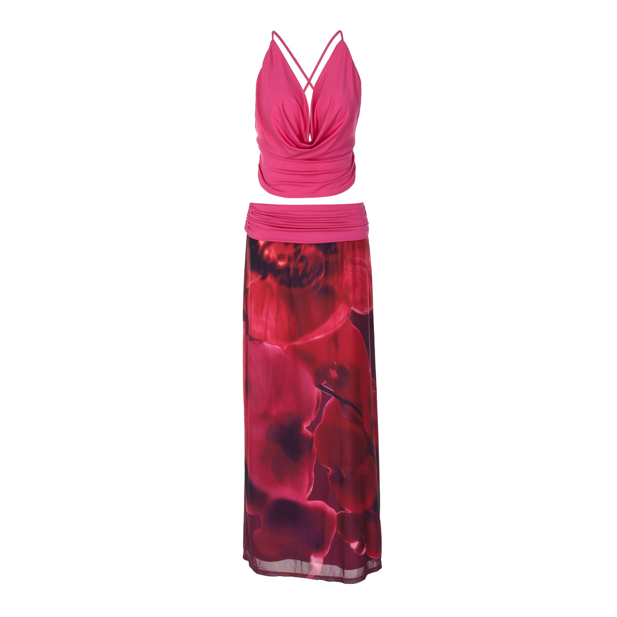 This women’s maxi dress features a backless design combined with a slim fit silhouette, crafted from high-quality printed polyester fabric. The lightweight polyester material ensures lasting comfort and breathability, while the vivid print adds a fashionable touch. Designed to flatter the figure, this maxi dress extends to ankle length, suitable for various occasions. The dress combines style and comfort seamlessly, making it an ideal choice for those seeking a chic and elegant appearance.