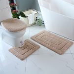 Durable 3-piece bathroom set with absorbent rugs and non-slip foot mats for enhanced safety and comfort in your toilet area.