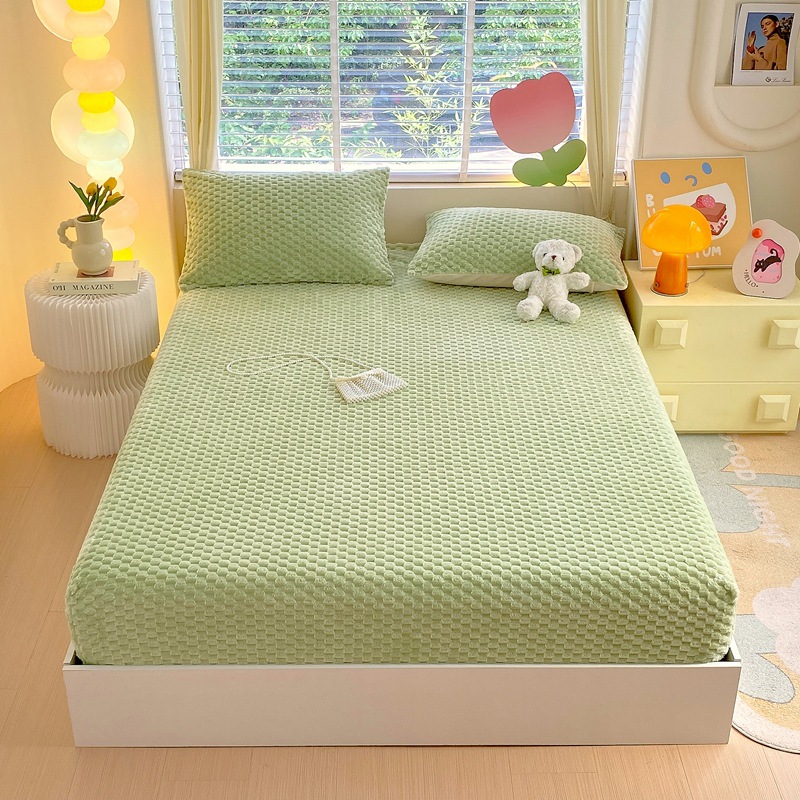This Beanie velvet fitted sheet is crafted from premium milk fiber material, ensuring a soft and smooth texture for enhanced sleeping comfort. Its plush velvet surface offers a luxurious feel while providing excellent durability. Designed as a mattress cover, it fits snugly around the mattress, offering secure protection against dust and spills. The breathable fabric maintains a comfortable temperature throughout the night, making it suitable for year-round use. Easy to maintain and resistant to deformation, this fitted sheet combines practicality with elegance.