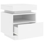 Stylish bedside table with integrated LED lights, measuring 40x39x48.5 cm, ideal for enhancing bedroom ambiance and functionality.