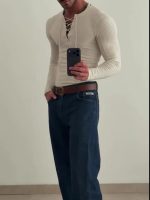 Be the first to review “Beige Ribbed Knit Lace-Up V-Neck Long Sleeve Top” Cancel reply