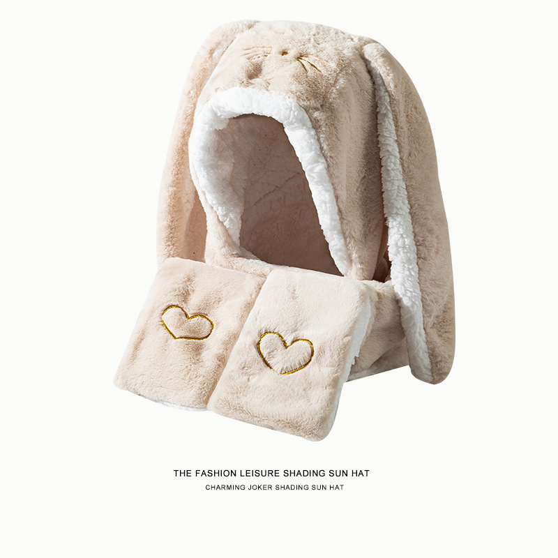 This winter set includes a plush, thickened hat, scarf, and gloves designed for women, featuring large rabbit ears on the hat for a cute and playful look. Crafted from a soft and warm material, the set offers excellent insulation against cold weather while maintaining comfort. The hat’s unique design enhances style, while the matching scarf and gloves complete the coordinated outfit. Ideal for daily wear in colder seasons, this set combines functionality with charming aesthetics.