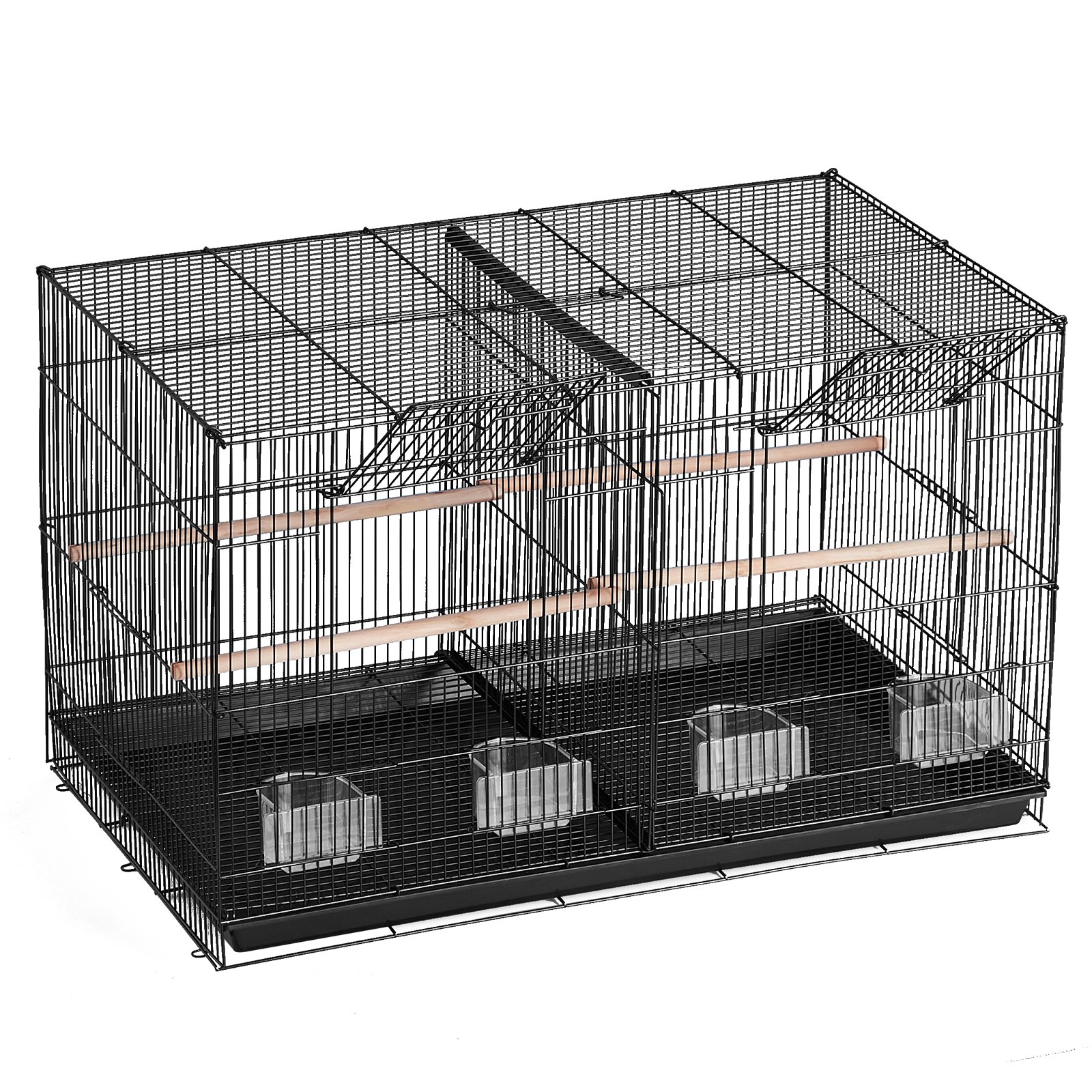 Durable 18-inch metal bird cage with divider, 5 perches, and 4 feeding cups. Ideal for parakeets, canaries, lovebirds, and cockatiels.
