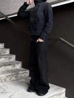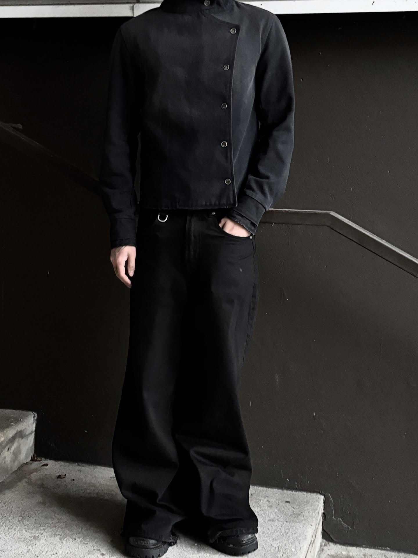Be the first to review “Black Asymmetrical Button Stand Collar Jacket” Cancel reply