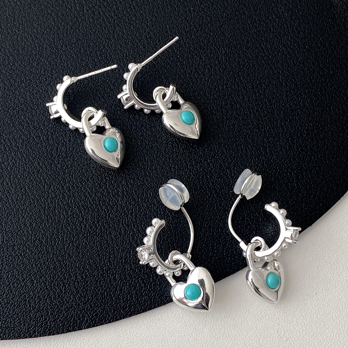 Elegant blue turquoise vintage-style C hoop earrings available in gold and silver finishes, combining simplicity and versatility.