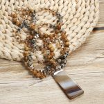 Elegant Bohemian-style pendant featuring natural semi-precious stones and mixed glass agate on a stylish women’s sweater chain.
