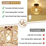 Mini boho rattan chandelier ceiling light with dimmable LED bulb for warm, adjustable ambient lighting and stylish home decor.