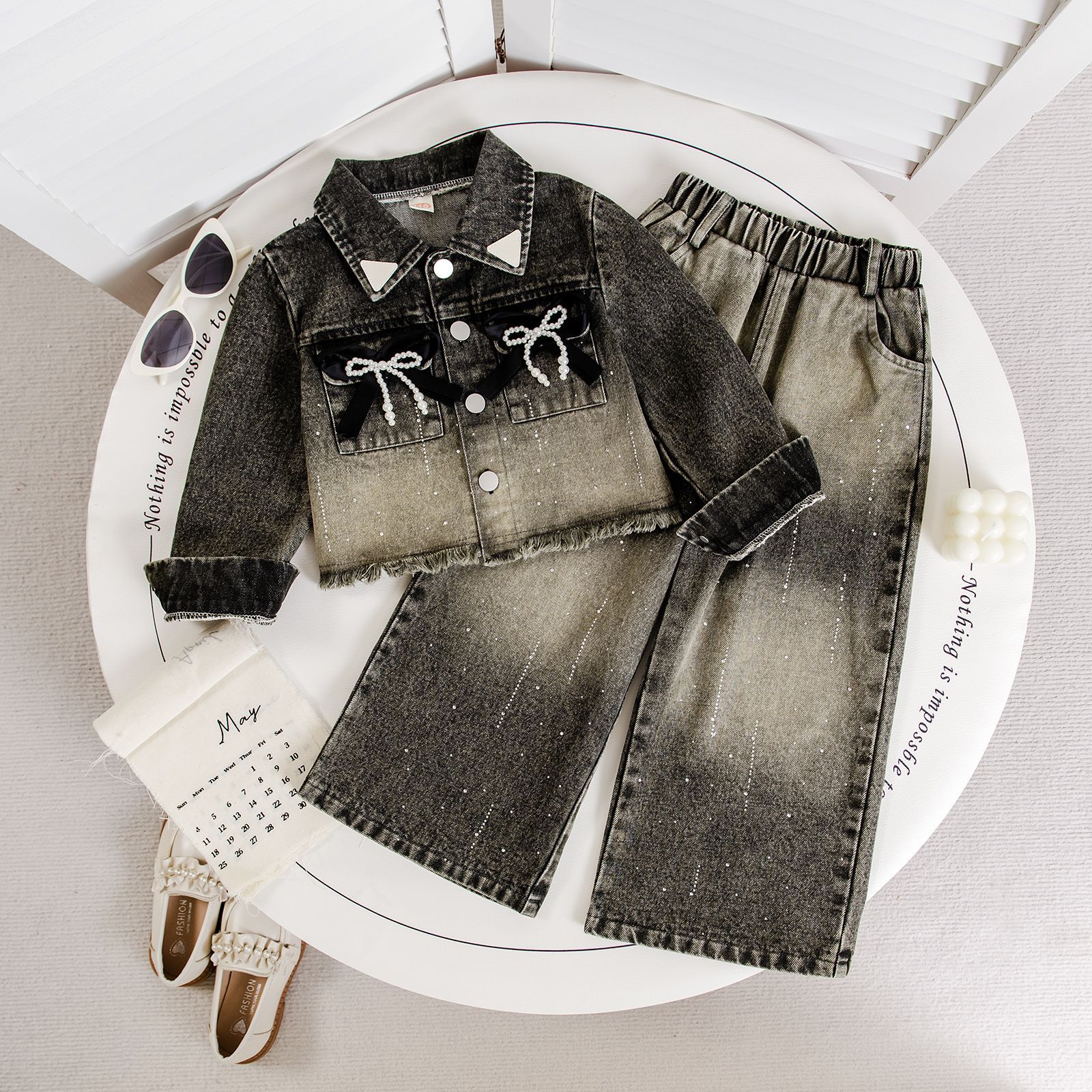 Stylish two-piece set featuring bow-adorned wide-leg pants, combining fashion and comfort for an elegant look.