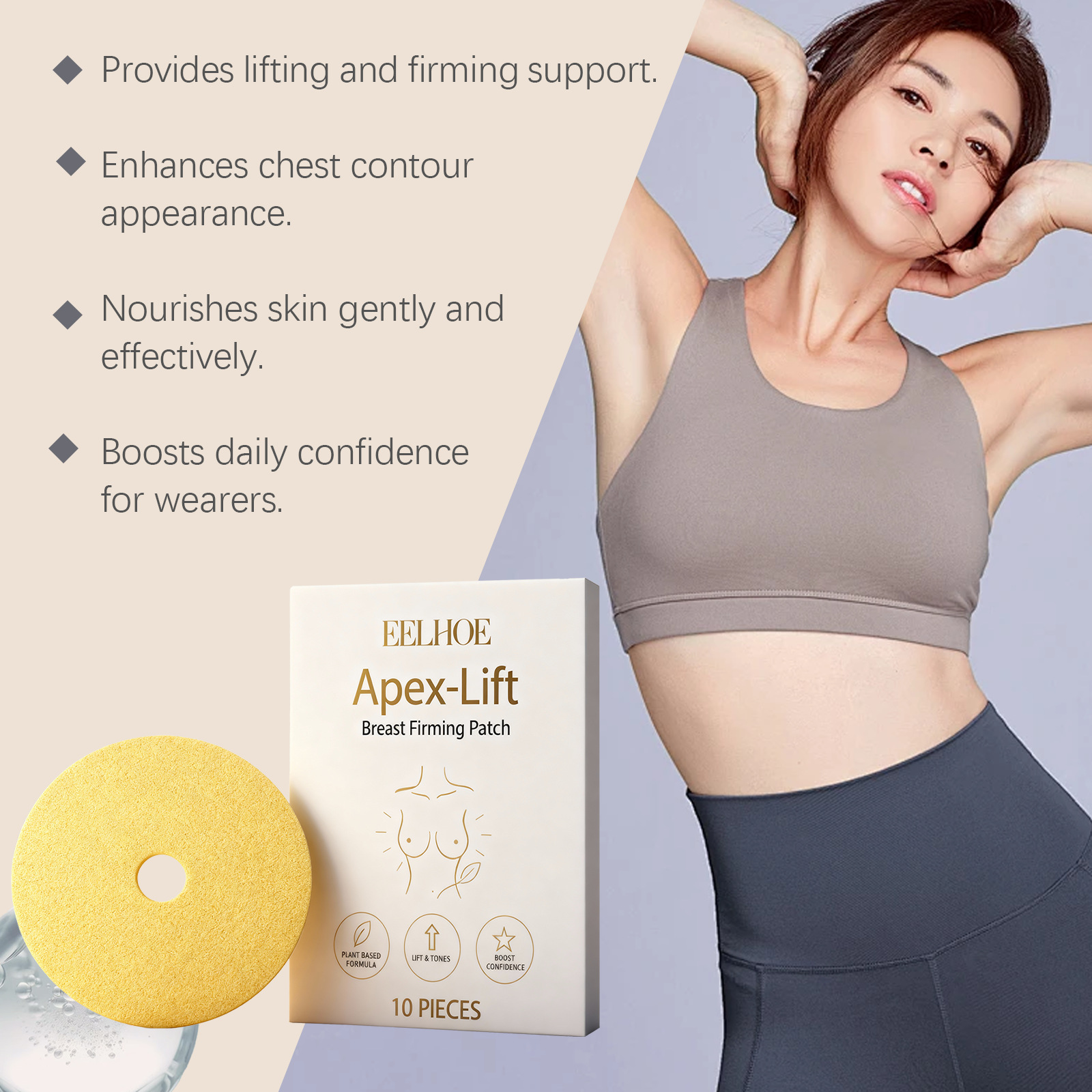 Effective breast firming patch designed to enhance skin elasticity and provide a natural lift for a youthful appearance.