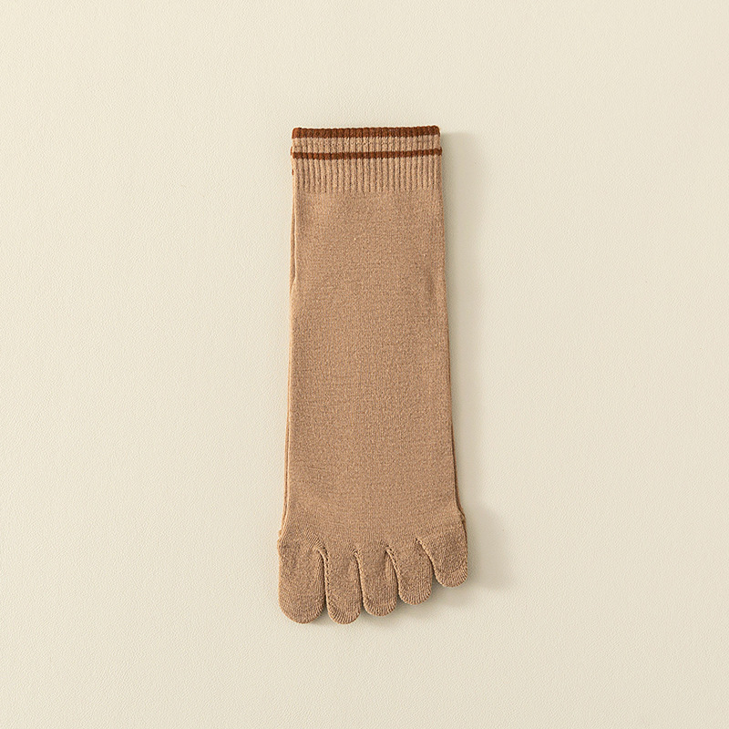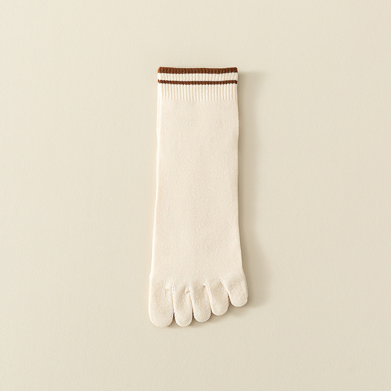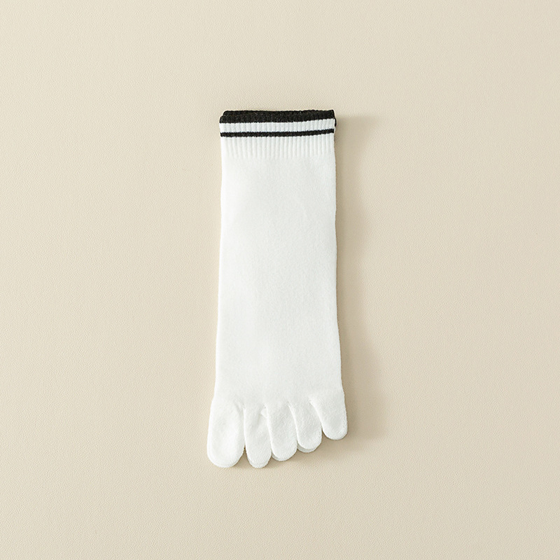 Comfortable breathable five-finger mid-calf socks with sweat-absorbing stripes for all-day freshness and support.