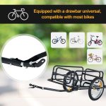 Our newest model of cargo trailer attaches to most bicycle and has plenty of space for groceries and running routine errands. It’s sturdy steel frames make this cart exceptionally durable and can hold up to110lb! Easy assembly and fold down. (1) Aosom type B bicycle hitch included.