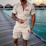 This men’s beach suit combines casual style with retro flair, featuring a classic plaid print enhanced by a distinctive PARIS heat transfer patch. Crafted from comfortable, breathable fabric, it is designed for relaxed beach outings and summer activities. The suit’s lightweight material offers excellent ventilation and ease of movement, ensuring comfort throughout the day. Its unique design reflects a vintage-inspired aesthetic ideal for casual wear by the seaside.