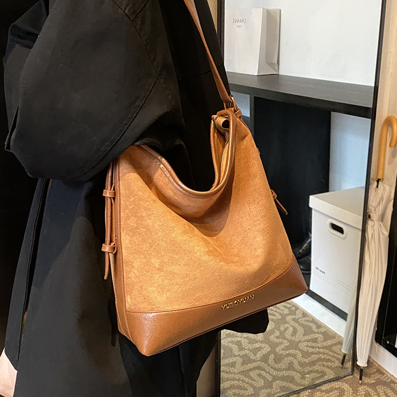 This casual retro-style bag features a durable suede exterior with a spacious interior designed to accommodate daily essentials efficiently. Crafted to suit various outfits, it offers a versatile all-match appeal ideal for everyday use. With its large capacity and comfortable carrying options, this bag combines practicality and timeless fashion, making it an essential accessory for women seeking both style and functionality.