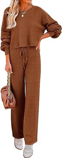 This casual two-piece set is designed for comfort and style, featuring a long-sleeved top paired with matching solid color trousers. Crafted from soft, breathable fabric, the ensemble provides ease of movement and a relaxed fit, ideal for daily activities. The solid color design offers versatile styling options, making it suitable for both indoor lounging and casual outings. The trousers provide a secure fit with an elastic waistband, enhancing comfort throughout the day.