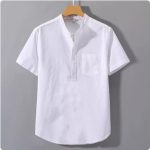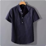 Be the first to review “Casual Stand Collar Short Sleeve Solid Color Slub Linen Shirt Top”