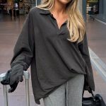 Comfortable women’s long sleeve loose top ideal for casual vacations and everyday wear.