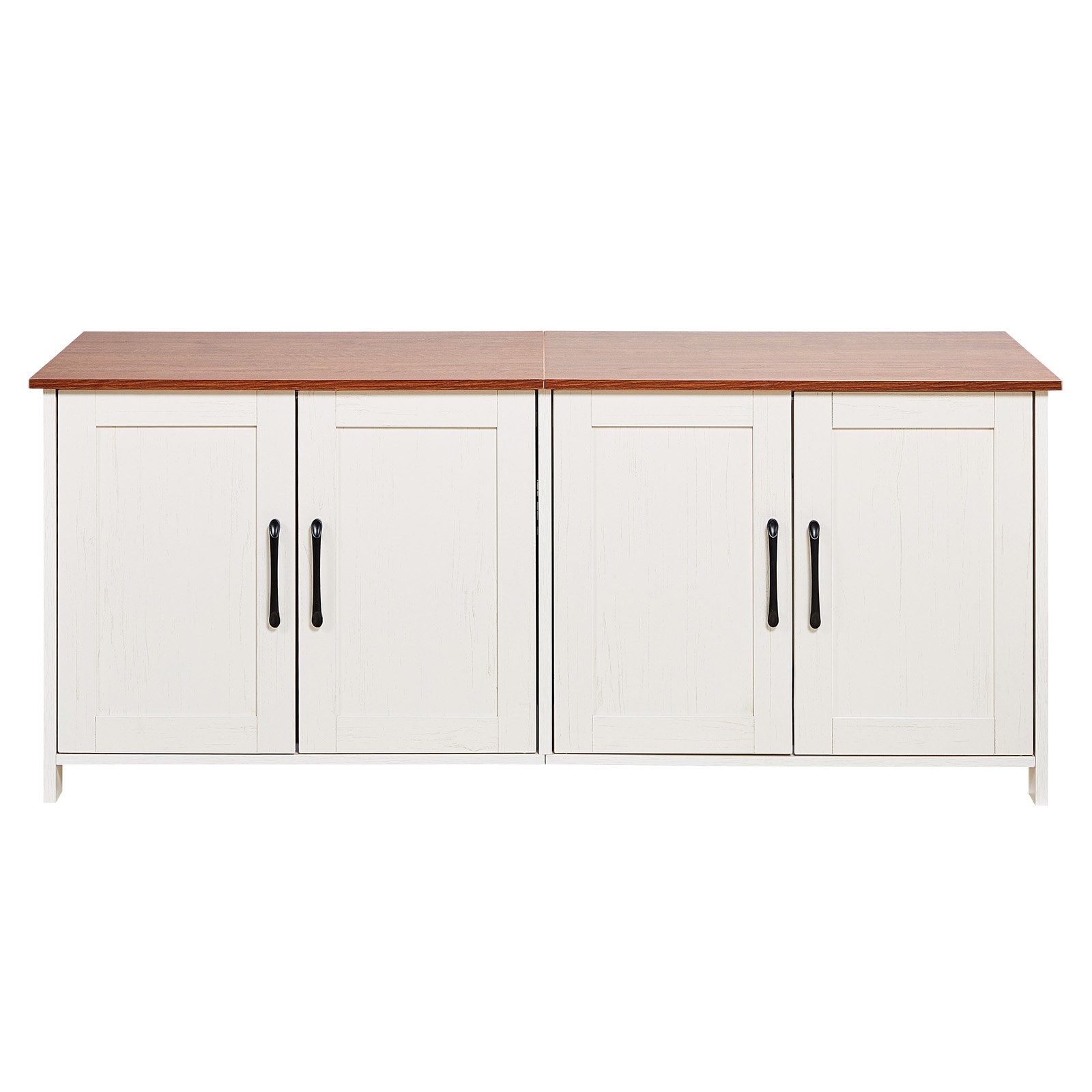 This spacious cat litter box enclosure measures 47.2 inches and is designed to accommodate multiple cats comfortably. Constructed from durable wood, it features a stylish brown and white finish that complements indoor furniture. The enclosure includes four front doors and two entrances, allowing easy access for cats while concealing litter boxes for a tidy appearance. Suitable for most standard litter boxes, this indoor cat washroom offers a practical and decorative solution to manage pet hygiene discreetly in your home.