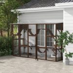 Spacious outdoor catio playground with shelves and bridges, designed for multiple cats to enjoy fresh air safely.