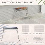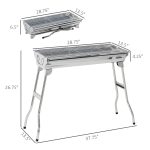 This compact charcoal barbecue grill is crafted from durable stainless steel, designed for portability and ease of use. Its foldable structure allows convenient transport and storage, making it suitable for outdoor activities such as camping and picnics. The grill features a practical design that accommodates shish kabob skewers efficiently, providing even heat distribution for optimal cooking results. Lightweight yet sturdy, it ensures reliable performance and longevity, making it an essential accessory for outdoor cooking enthusiasts.