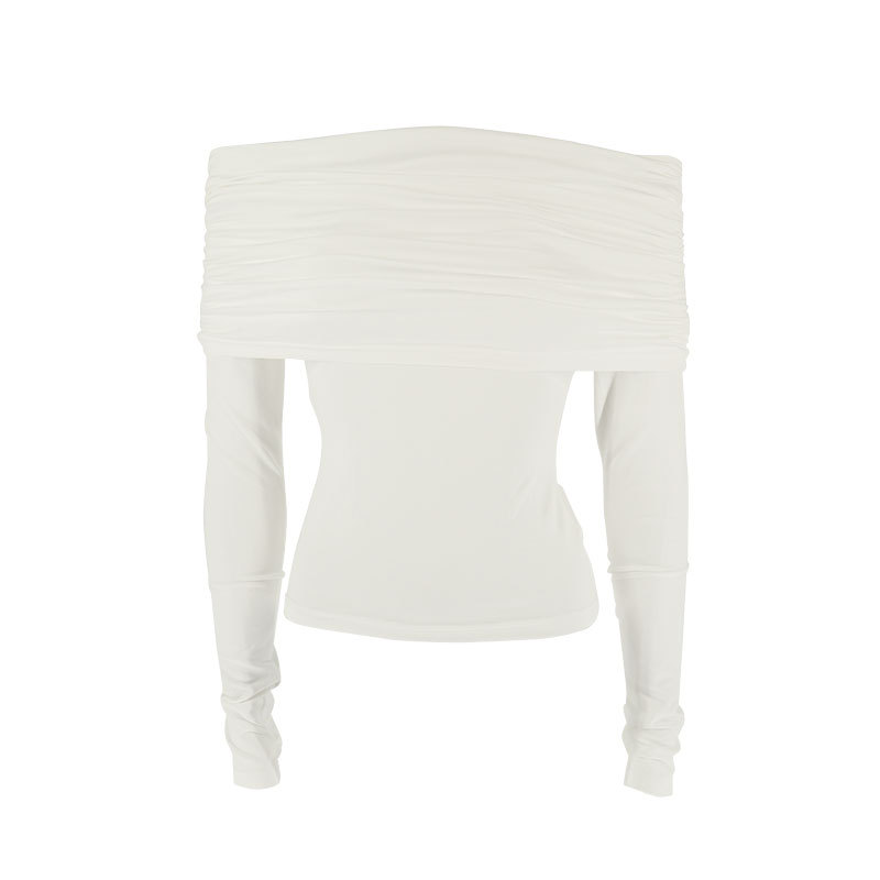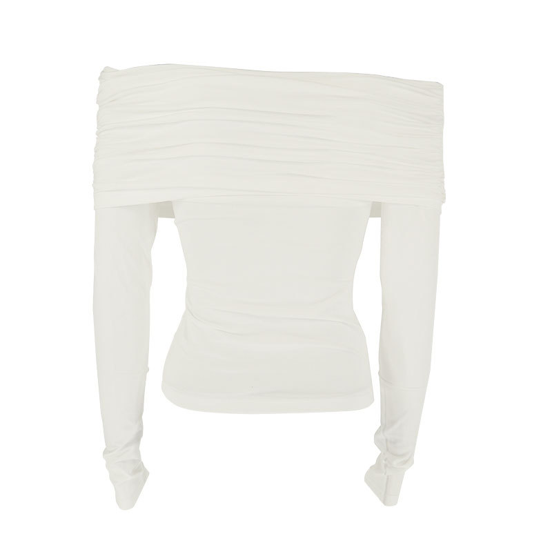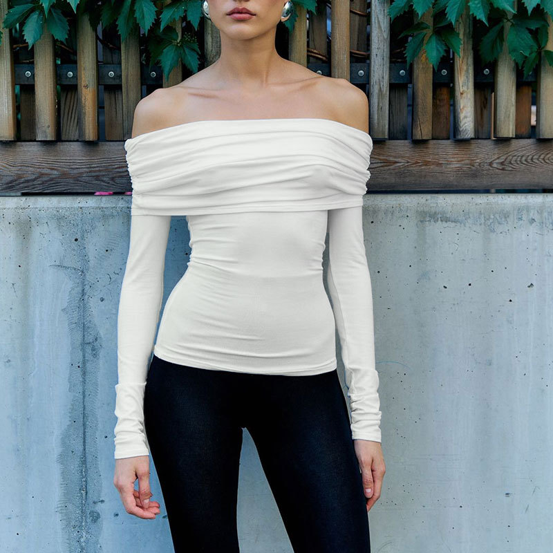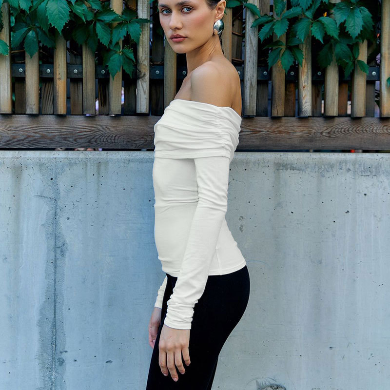 Elegant off-shoulder slim-fit long-sleeve top offering versatile style for any occasion. Comfortable and flattering design.
