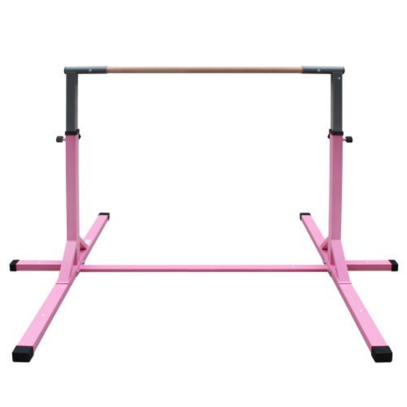 Adjustable blue gymnastics bar designed for children over 3 years old, ideal for home training and physical development.