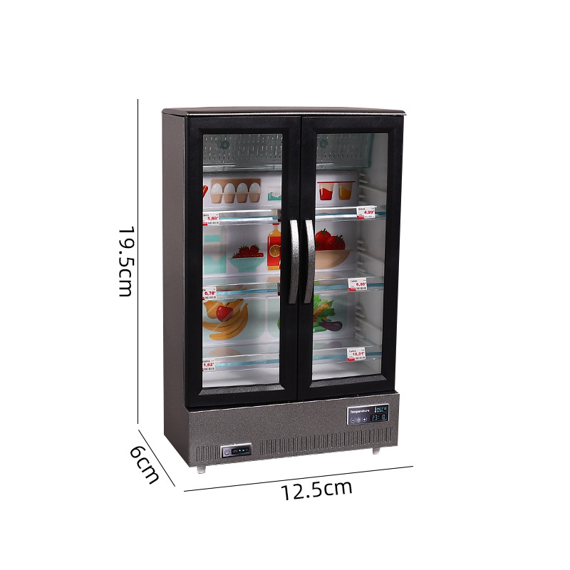 Realistic children’s mini double door refrigerator toy for imaginative play with ample storage and durable design.