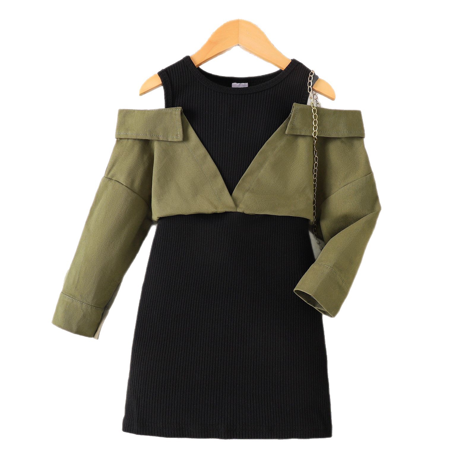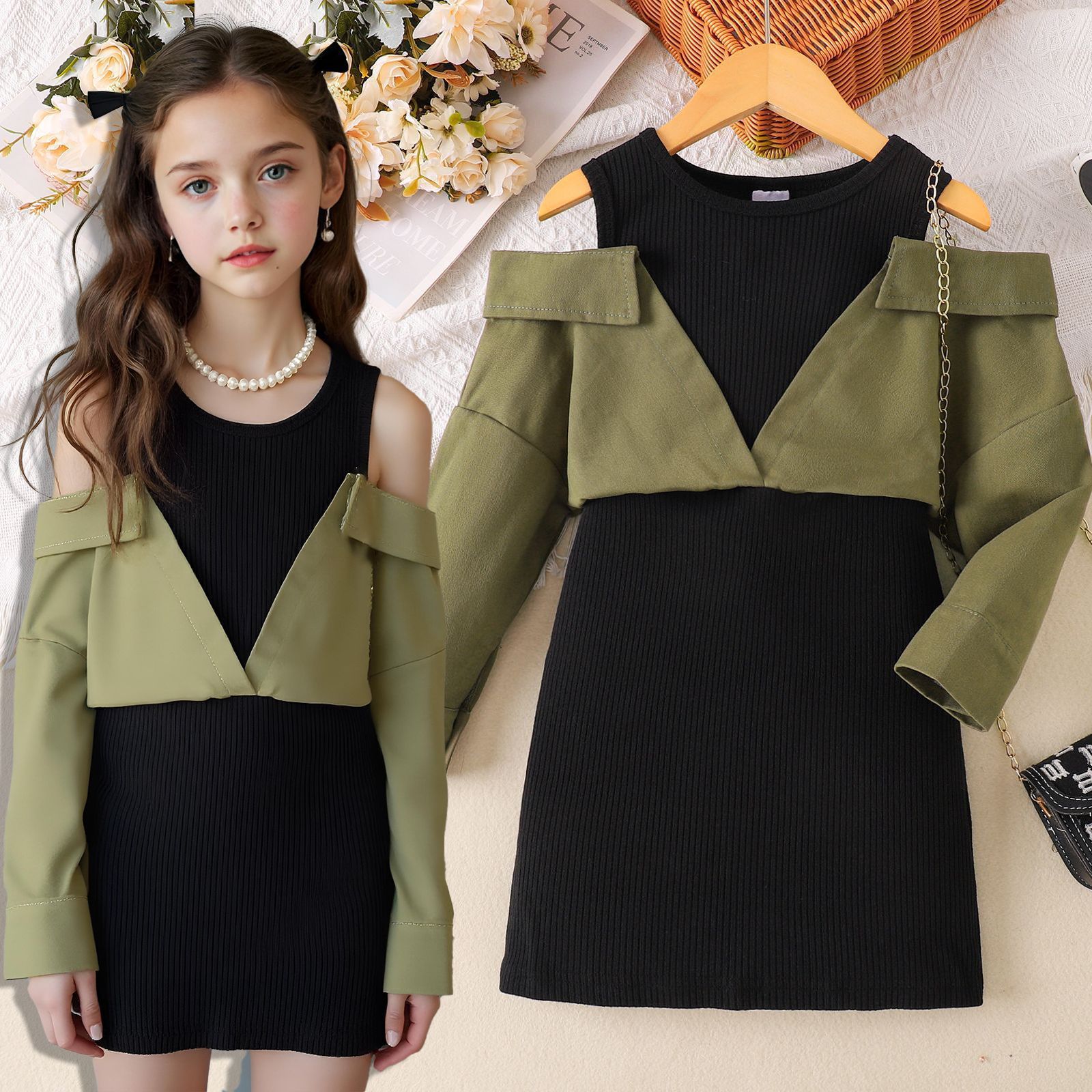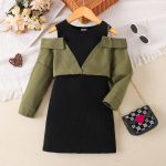 Elegant children’s off-shoulder long sleeve dress featuring comfortable fabric and stylish design for various occasions.