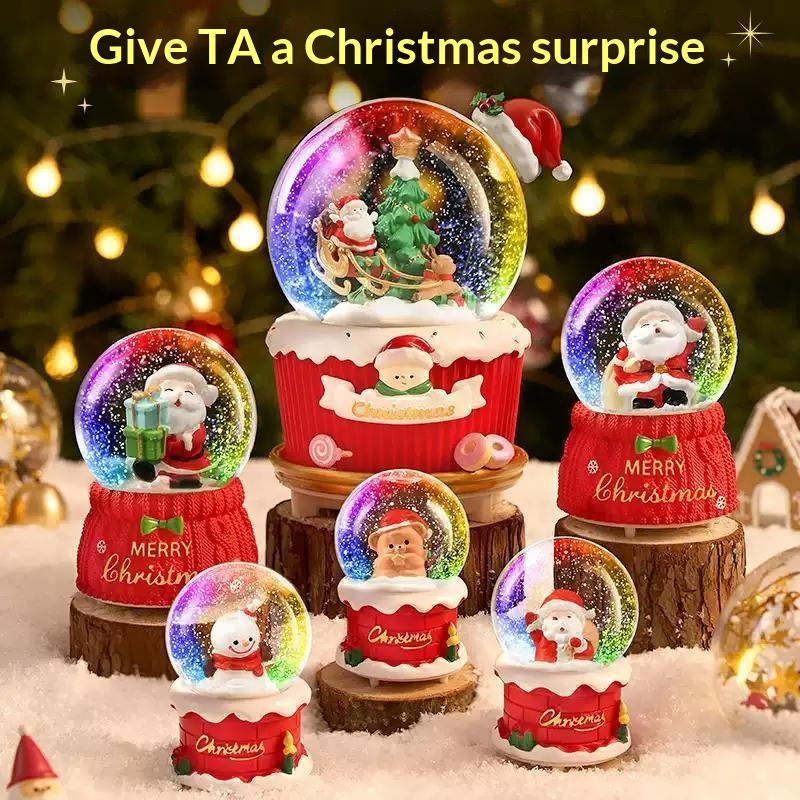 This Christmas crystal ball music box combines charming holiday ambiance with intricate design. Crafted from high-quality crystal material, it features a built-in music mechanism that plays classic tunes, a soft LED light for enchanting illumination, and an automatic snow effect that simulates falling snow within the globe. Ideal for festive decoration, it enhances any space with its elegant aesthetic and seasonal charm. The compact design allows easy placement on tables, mantels, or shelves, making it a perfect addition to holiday décor collections.