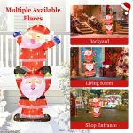 ● Quick Installation: It’s super easy to finish the assembly just with several basic steps. What you need to do is to put the two Santa figures together, fix them with ties and then insert the double Santa to the ground with stakes. All necessary accessories are included in the package and the instruction is easy to follow.