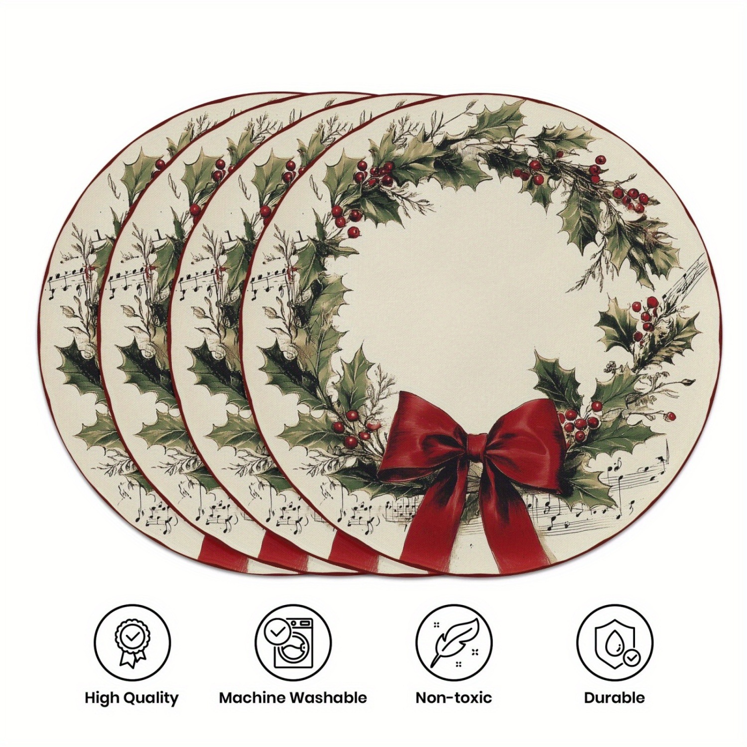 Elegant Christmas garland bow featuring holly and snowflake accents for festive table decor and seasonal ambiance.