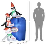 Festive outdoor Christmas inflatable featuring North Pole mailbox, penguins, and snowman for seasonal holiday decor.