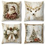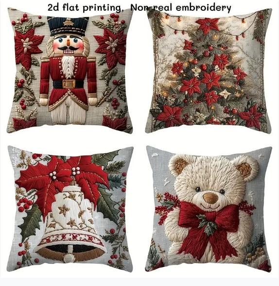This Christmas pillowcase set includes covers adorned with festive designs such as Christmas trees, reindeer, and snowflakes. Crafted to enhance holiday ambiance, these cushion covers are ideal for sofas and seating areas, adding seasonal charm to your living space. Designed with durable and comfortable fabric, the set complements various decor styles while providing a cozy touch during the festive season.